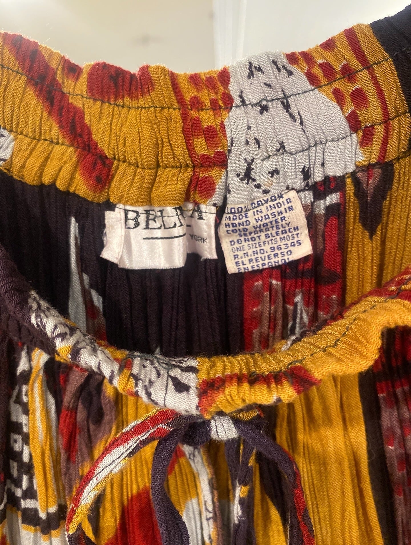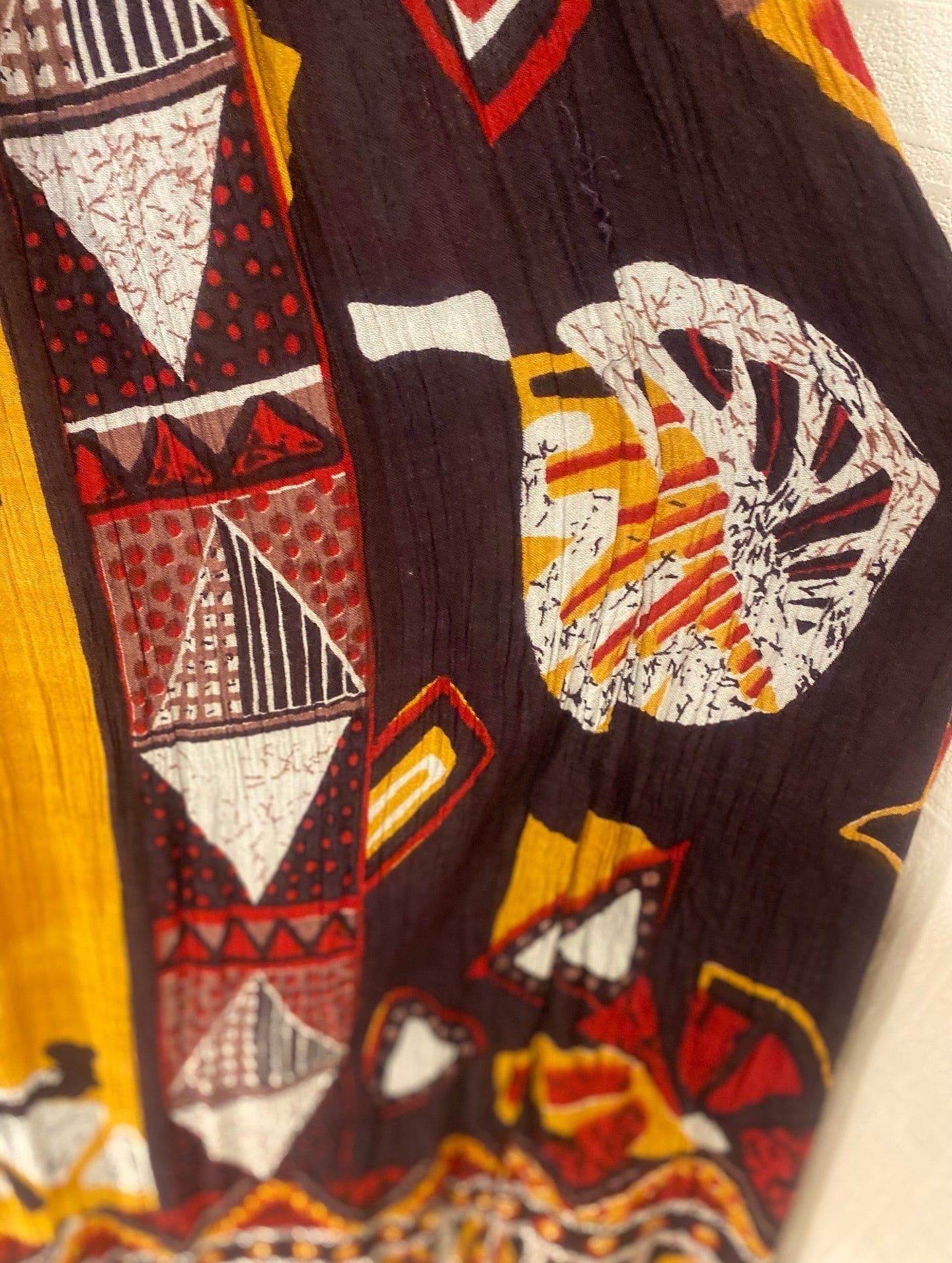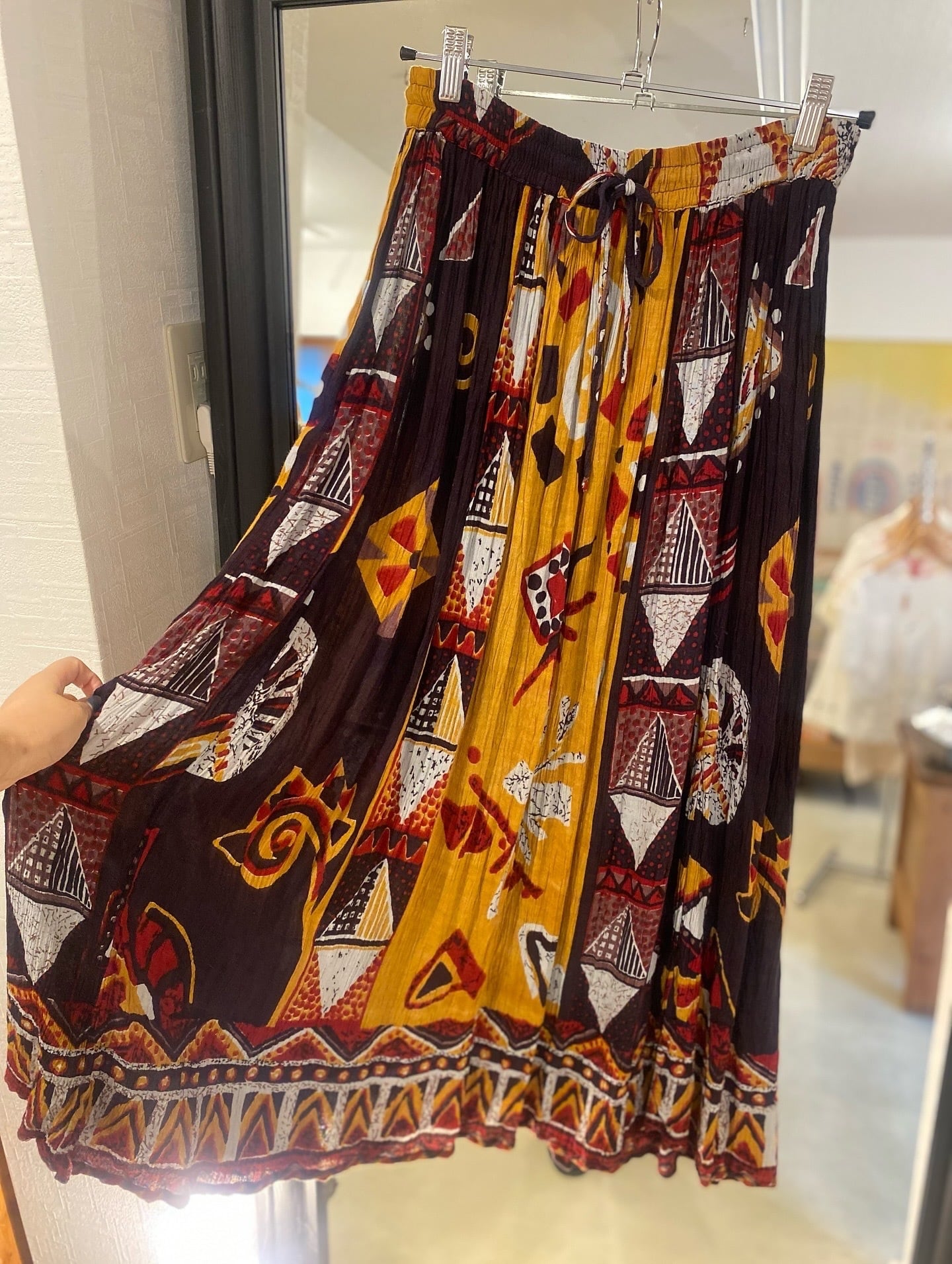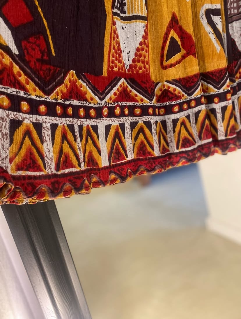 幾何学模様のような柄のインドレーヨンスカート