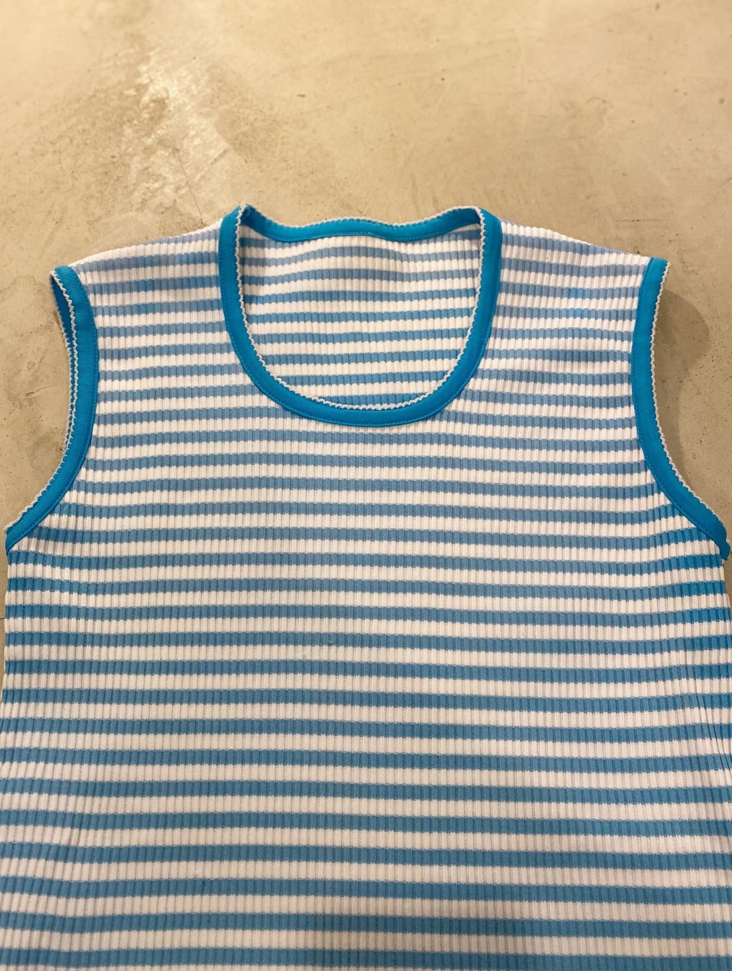 夏らしい爽やかなブルーが可愛いボーダートップス