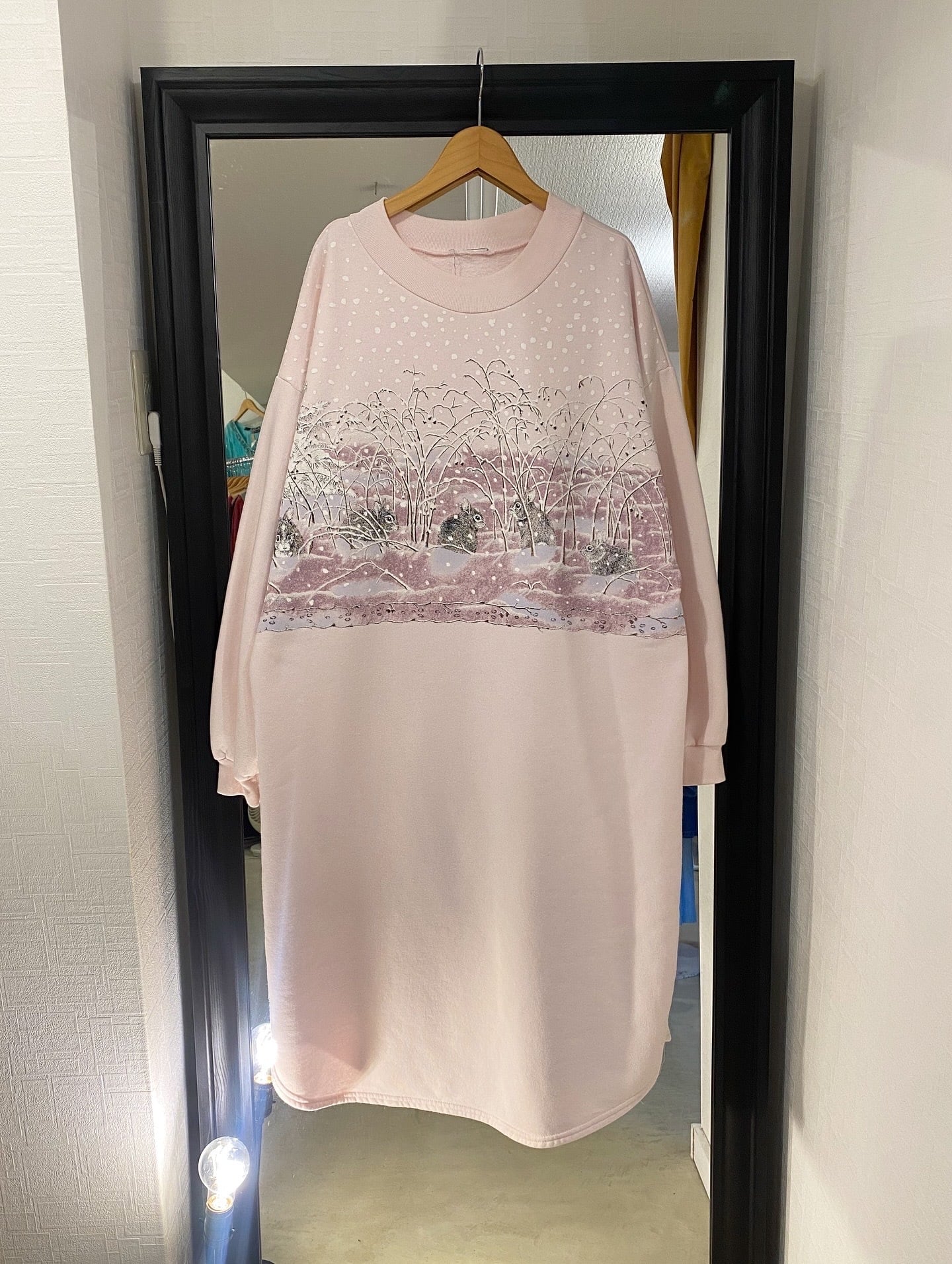 淡いピンク地に雪被りうさぎちゃんのプリントがされた