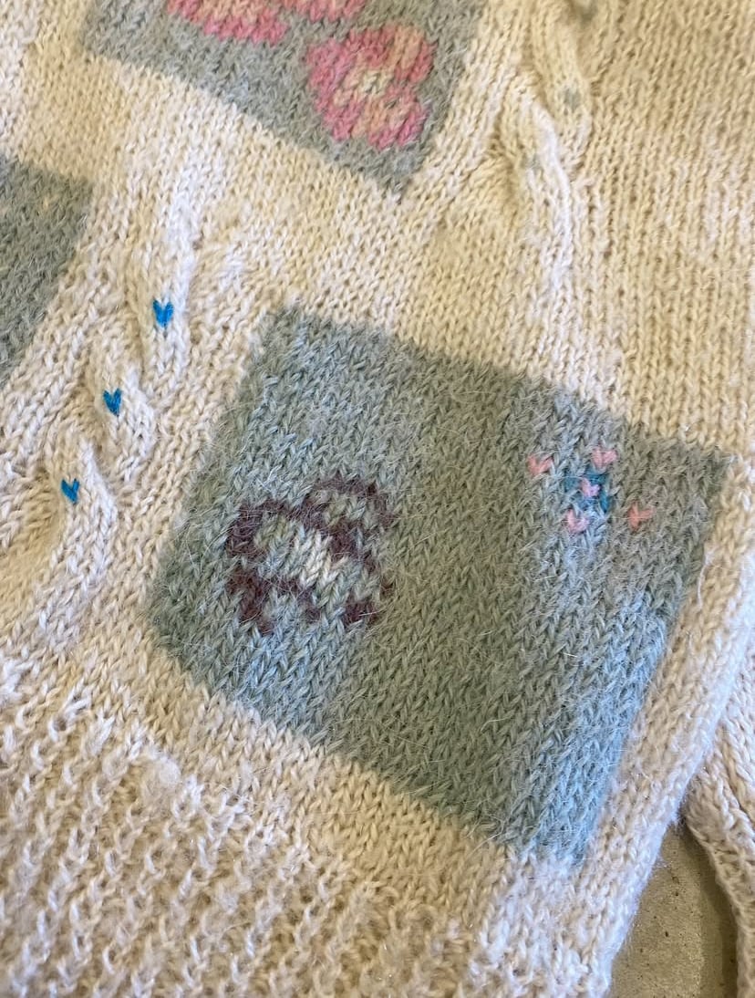 それに、首元や全体的にも三つ編みのような編み方のデザインが入っていて立体感が出て素敵です。