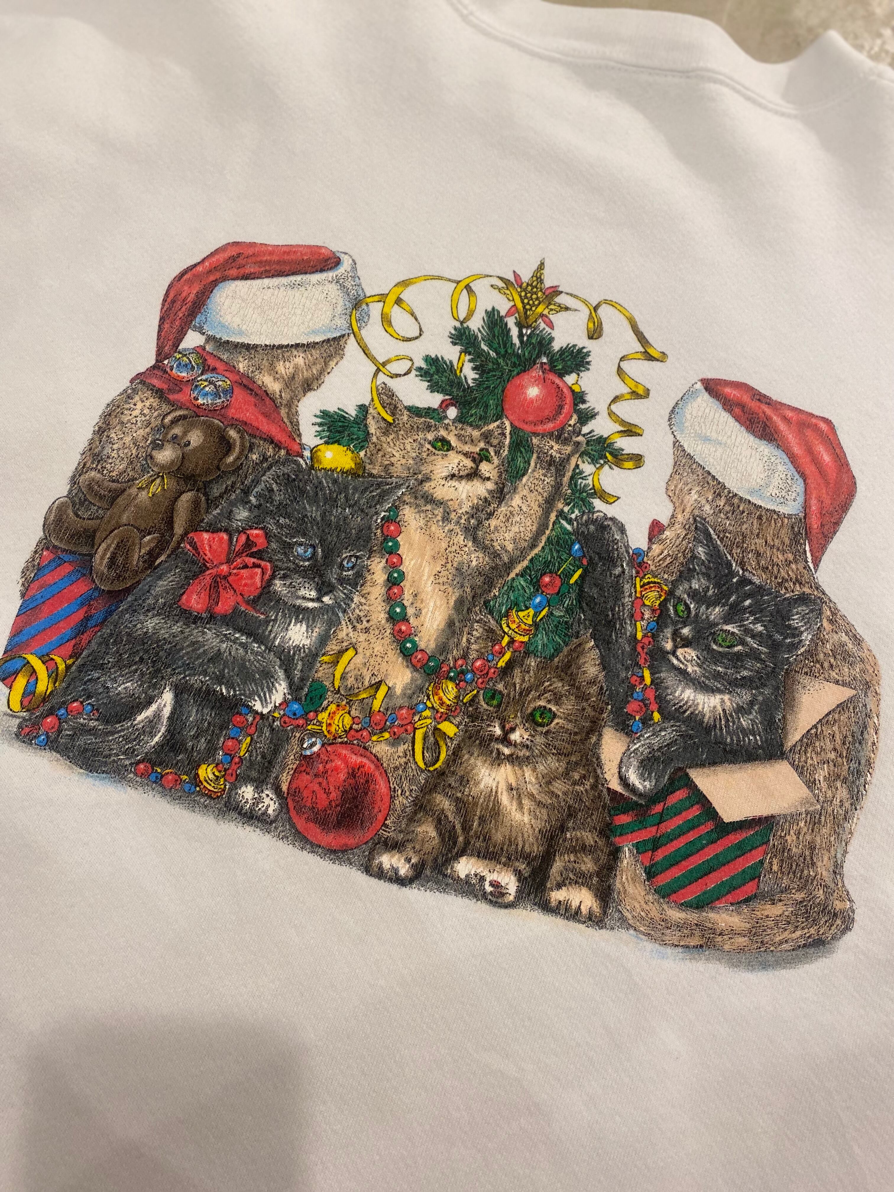 ねこちゃんファミリーのクリスマスの様子がプリントされている