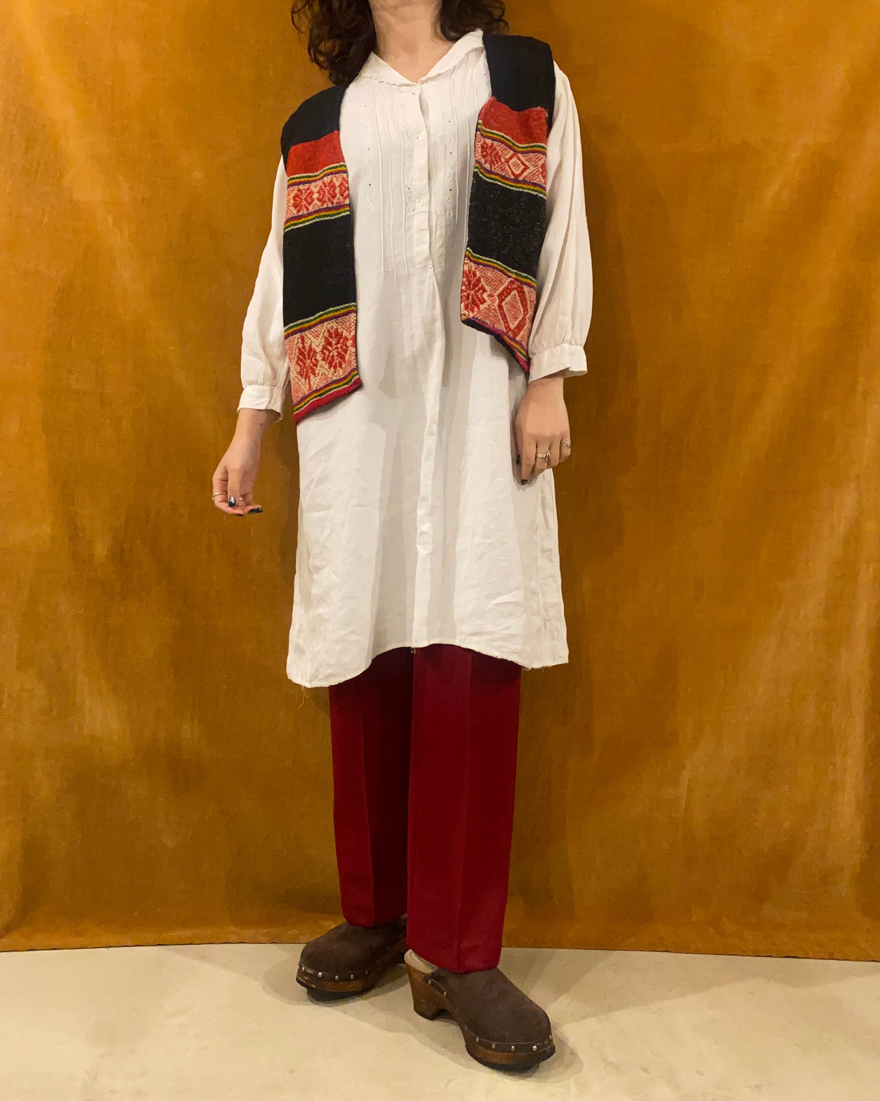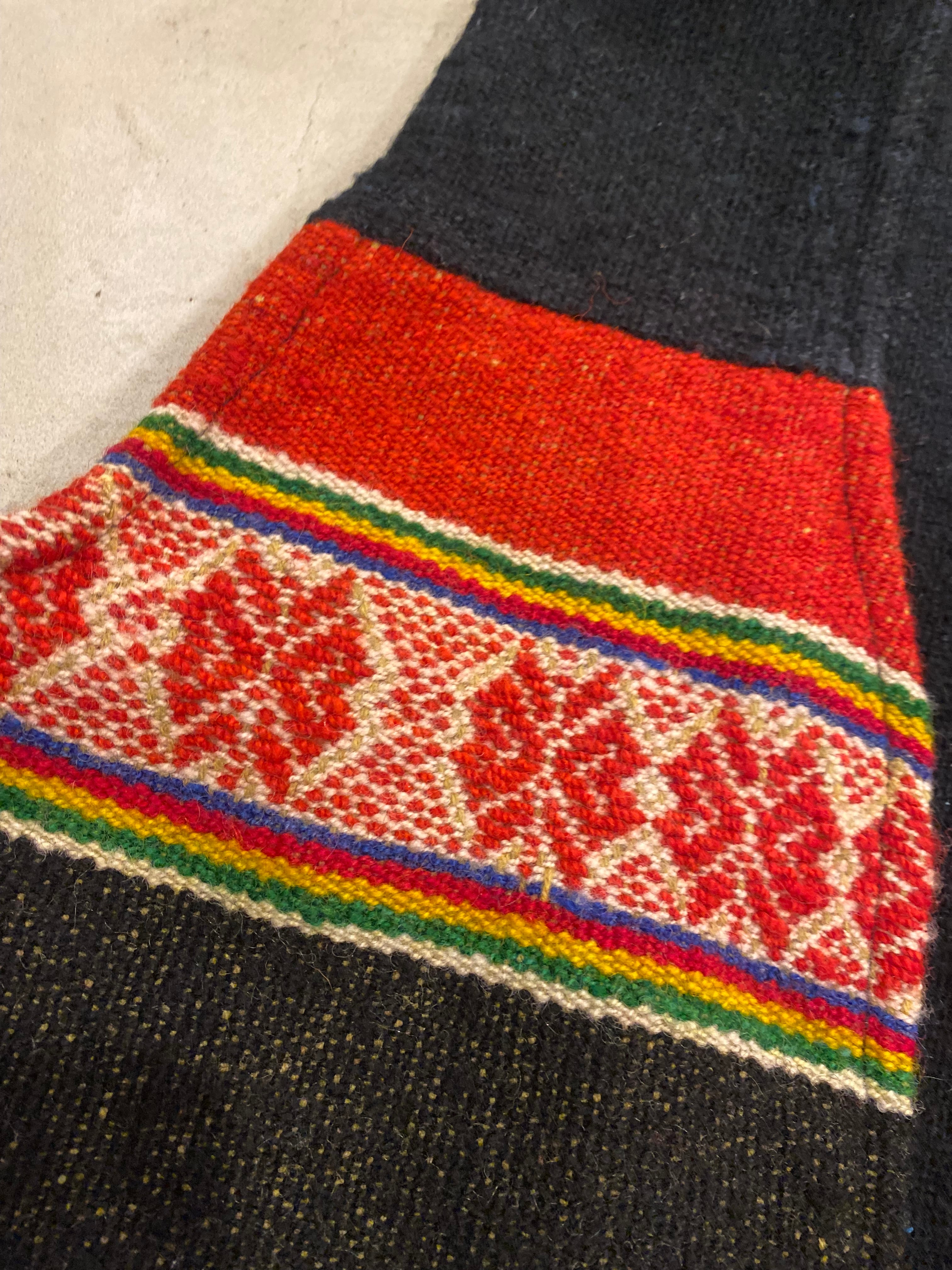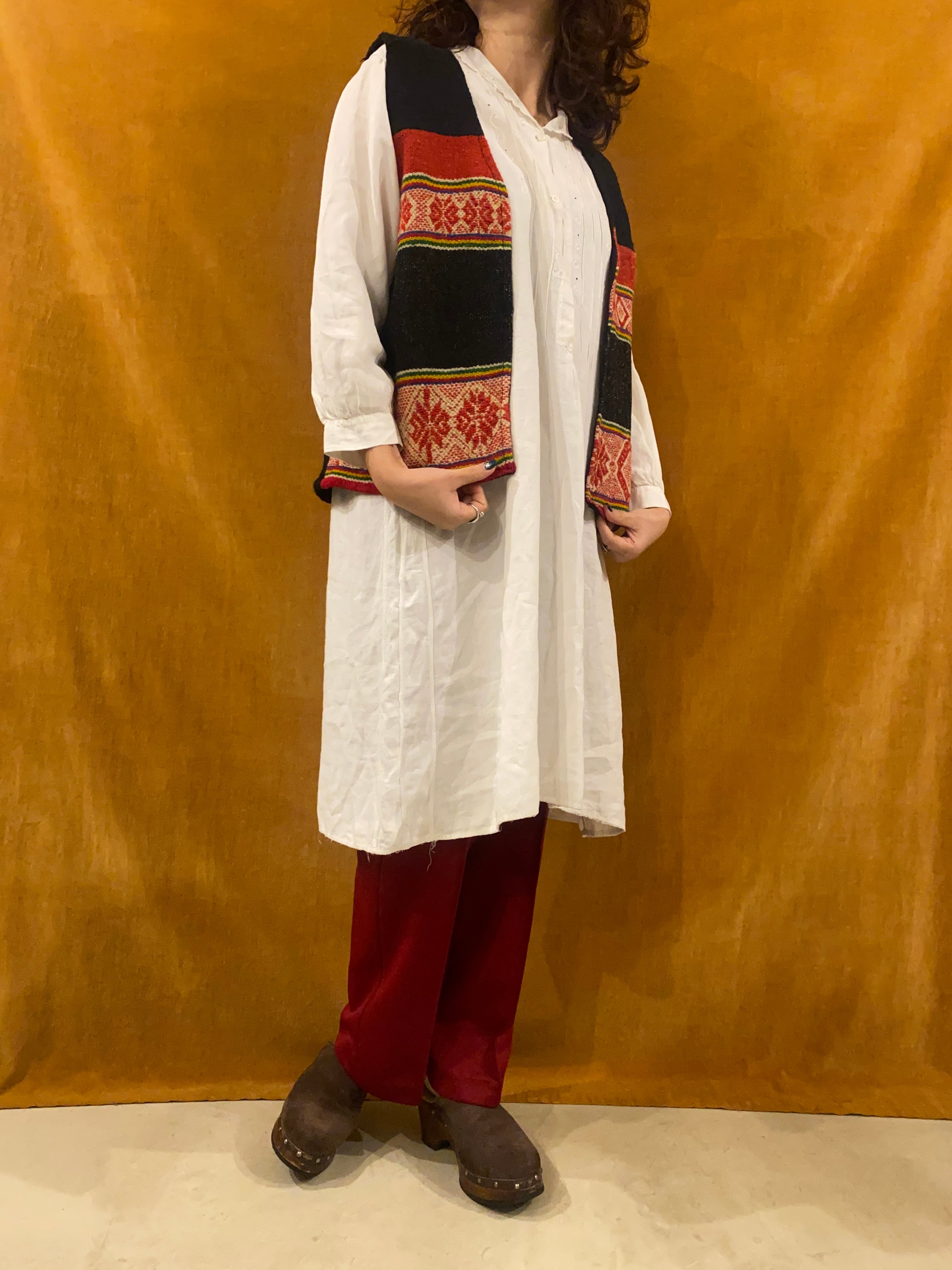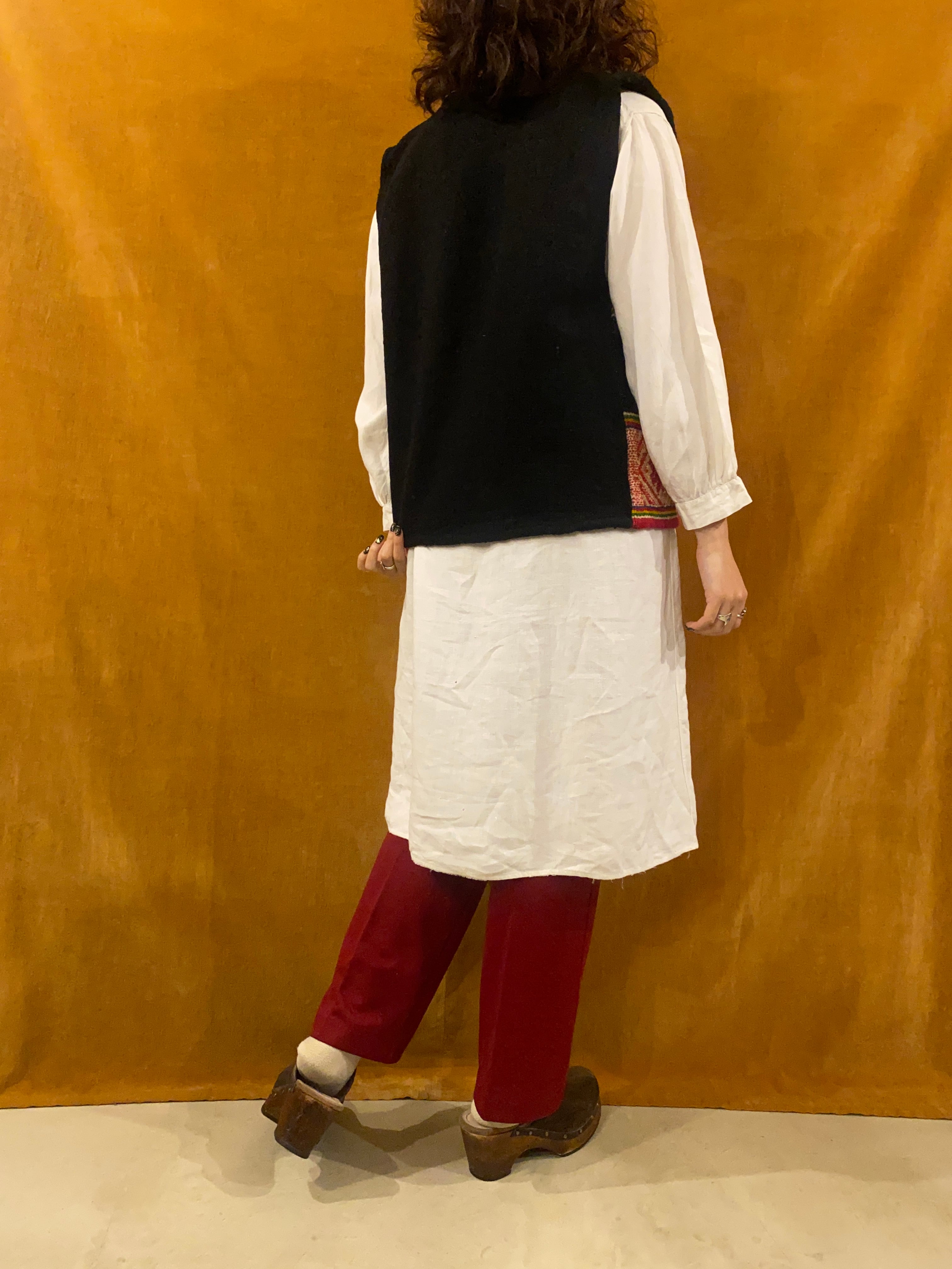 ブラック地に赤や黄色などカラフルな織のベスト