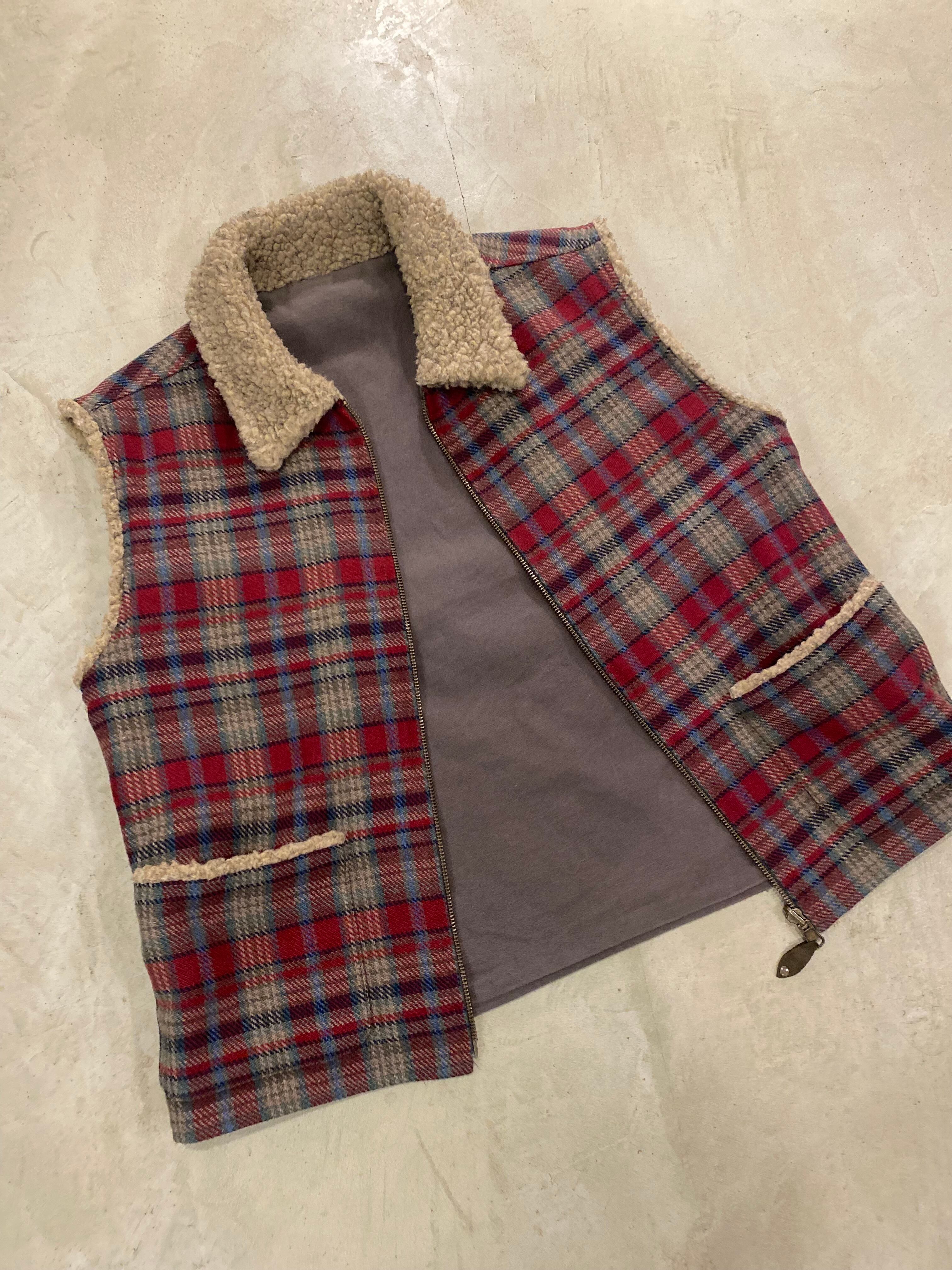 plaid boa vest