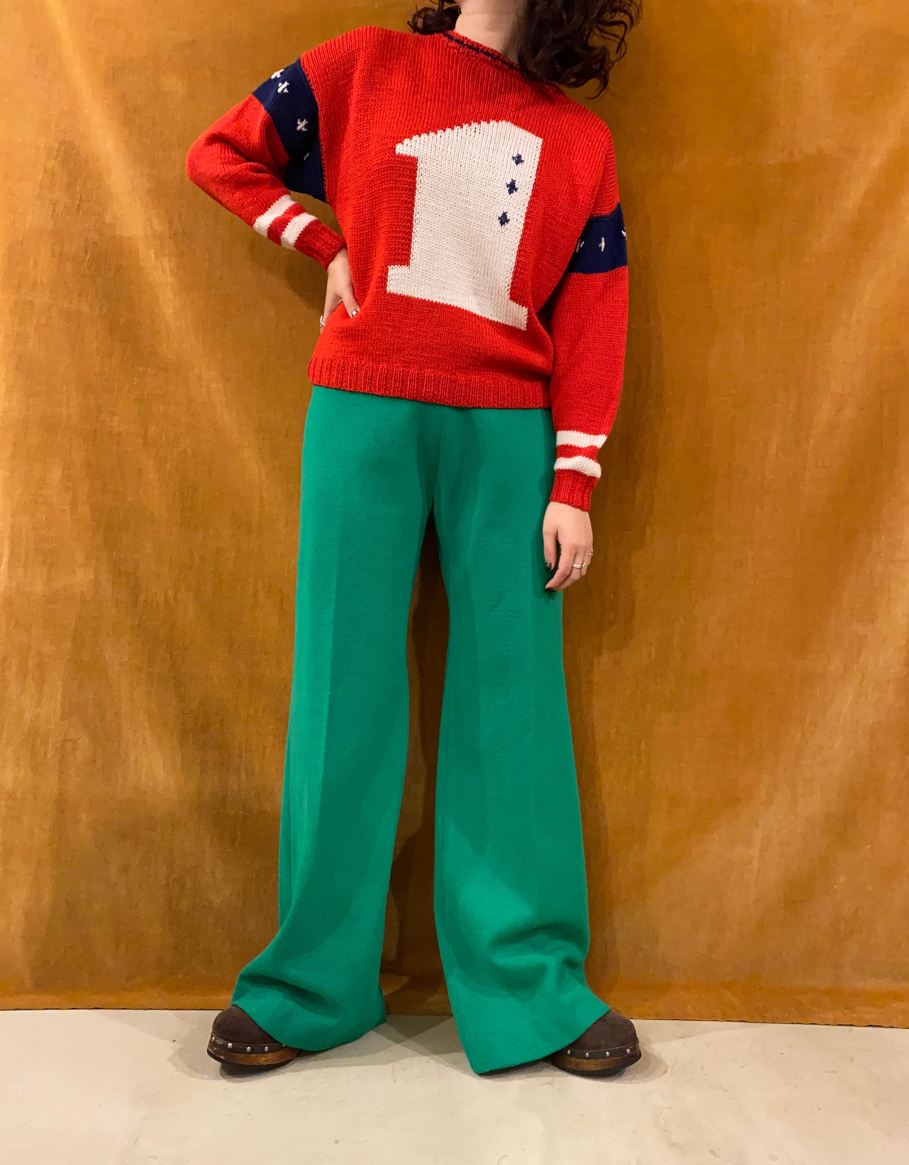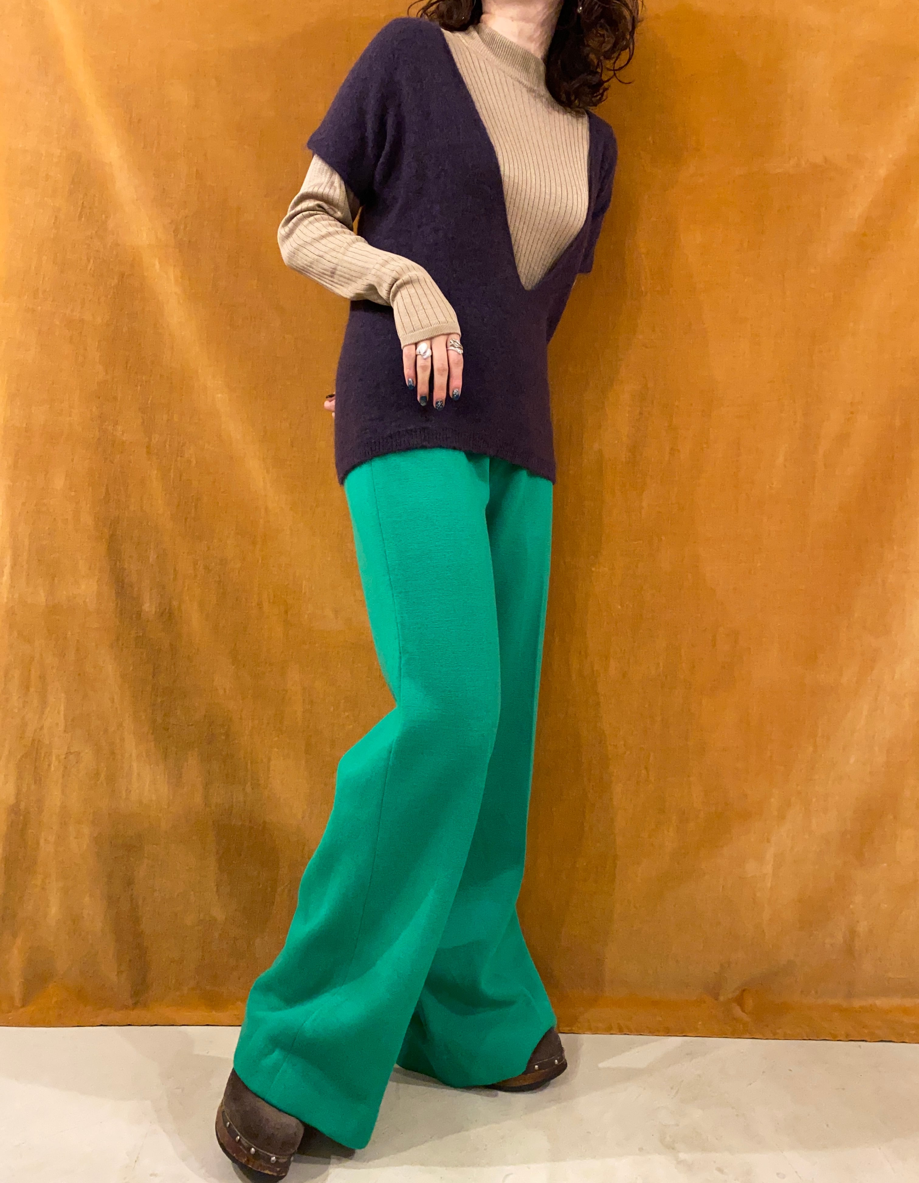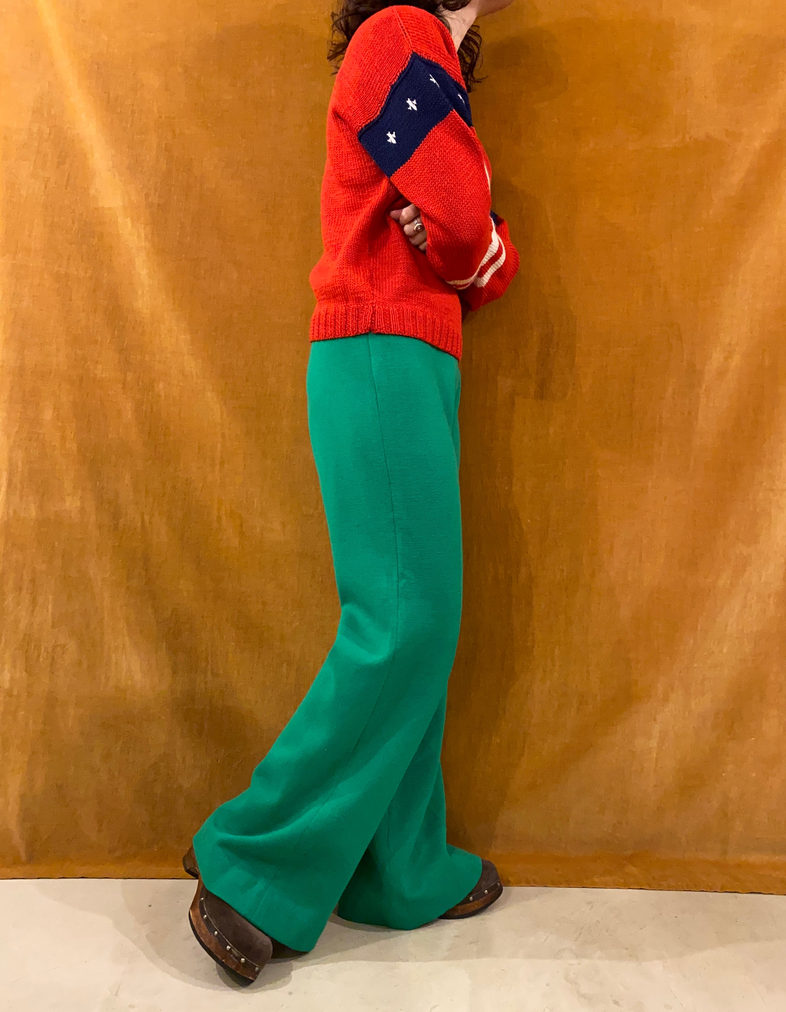 綺麗なグリーンのニットパンツ
