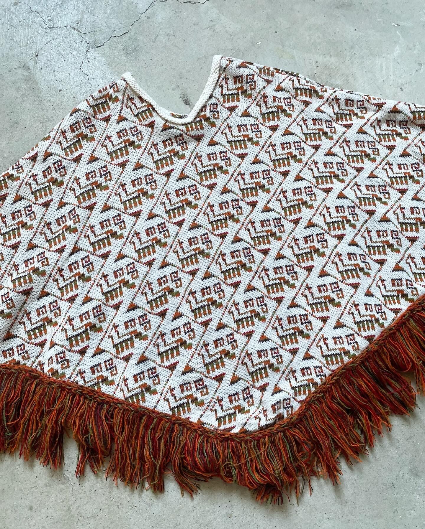 アルパカ?キリン?ラクダ?な柄のポンチョ