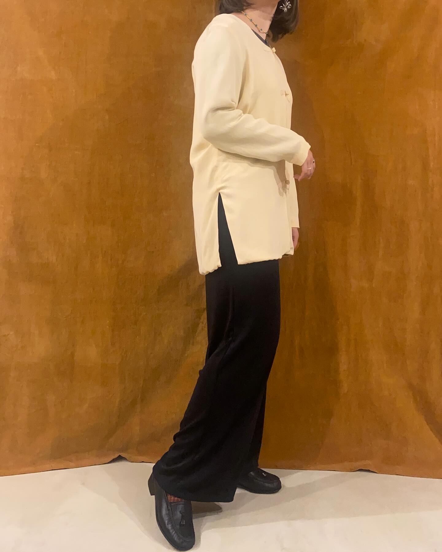 チャイナボタンが可愛いシルクのチャイナシャツ