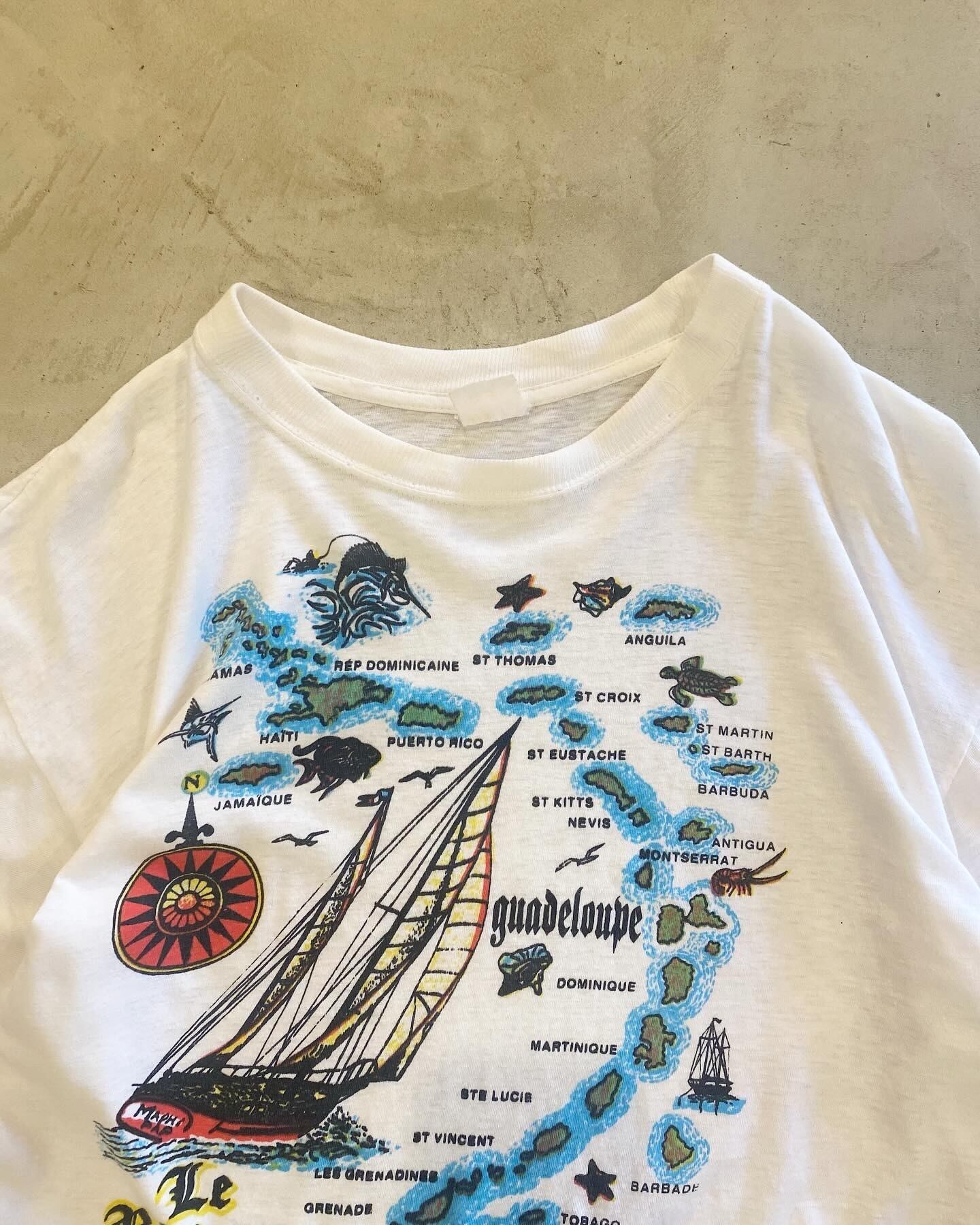 カリブ海の島々がプリントされたTシャツ