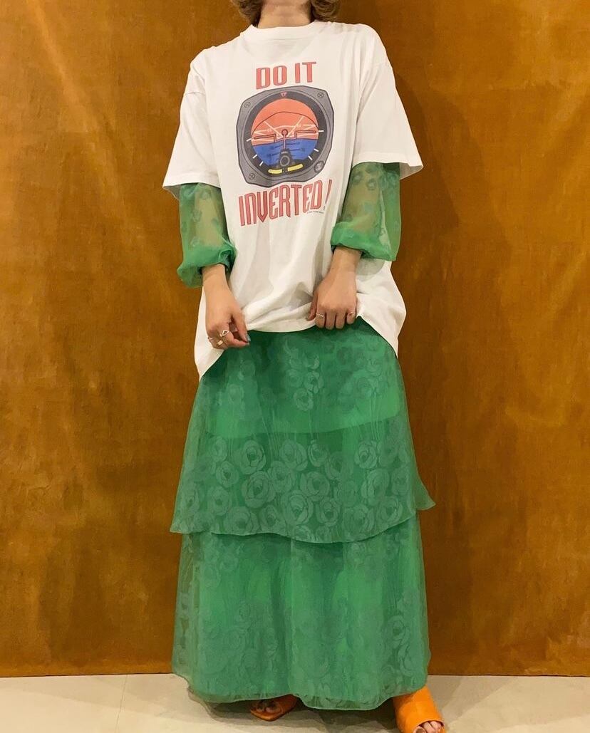 シルエットもプリントも古着っぽい1着かと☺︎