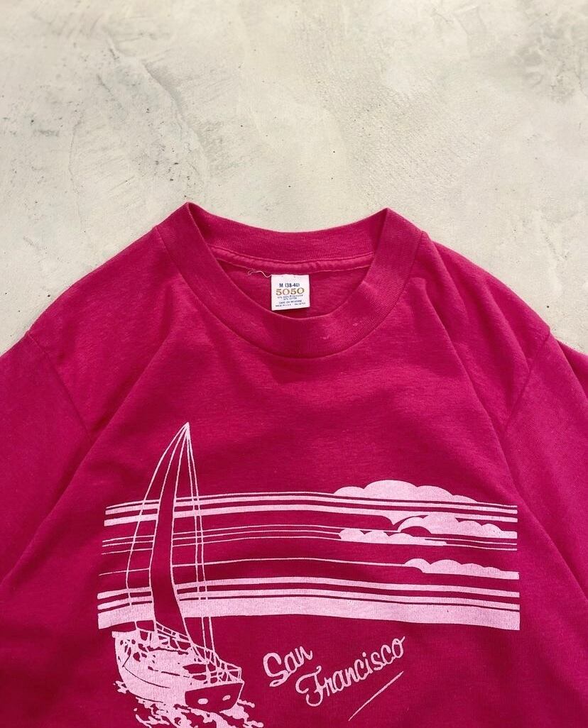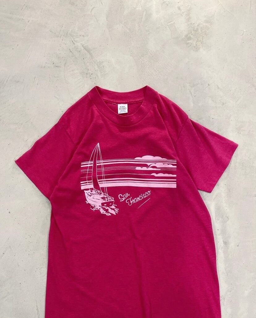 マゼンタカラーのプリントtee