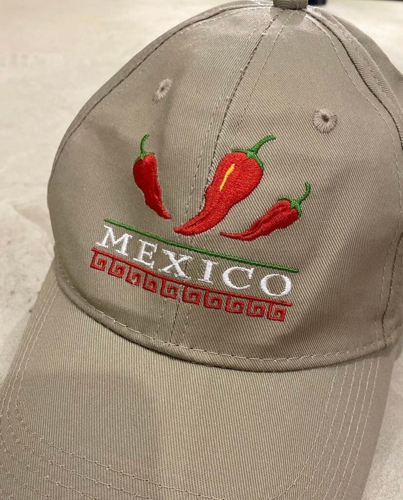 唐辛子の刺繍が印象的な刺繍キャップ