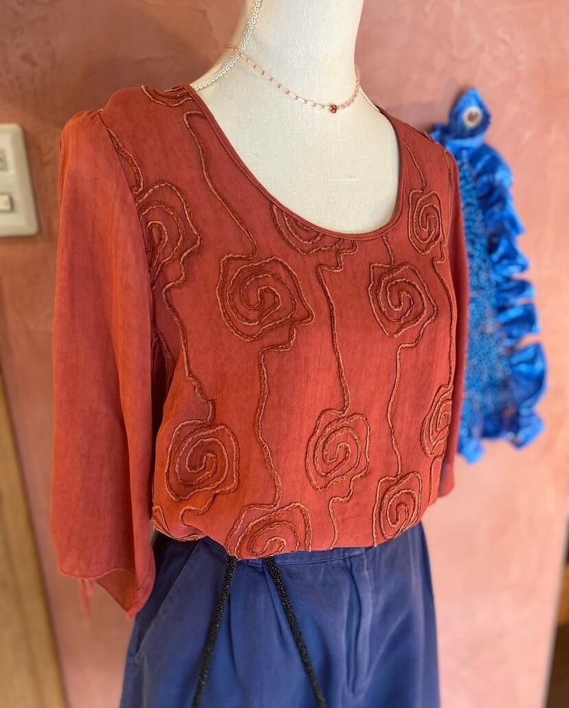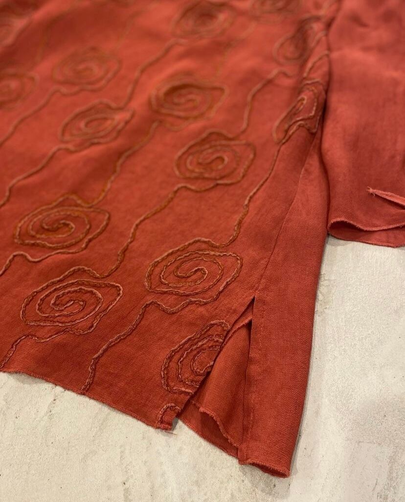 秋らしい色合いの刺繍トップス