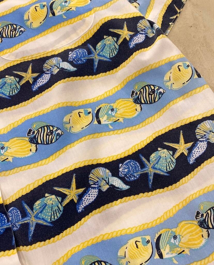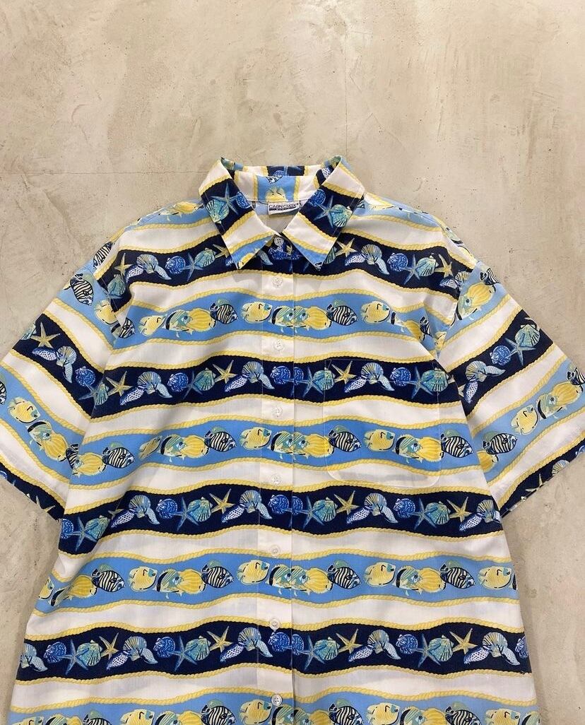 お魚&ヒトデや貝など海の仲間パターンのシャツ
