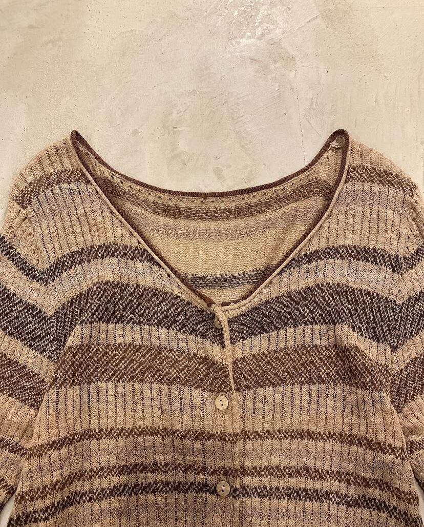 コットンとリネンで編まれた透け感のあるニットと、