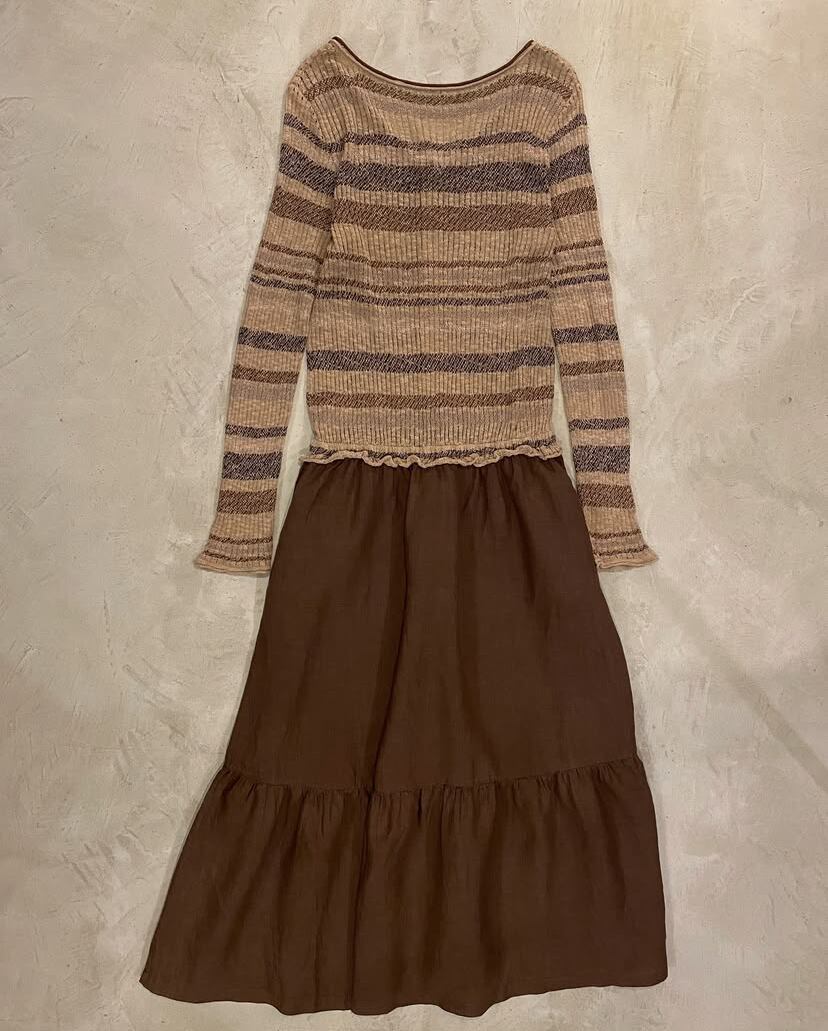 knit × skirt switching dress