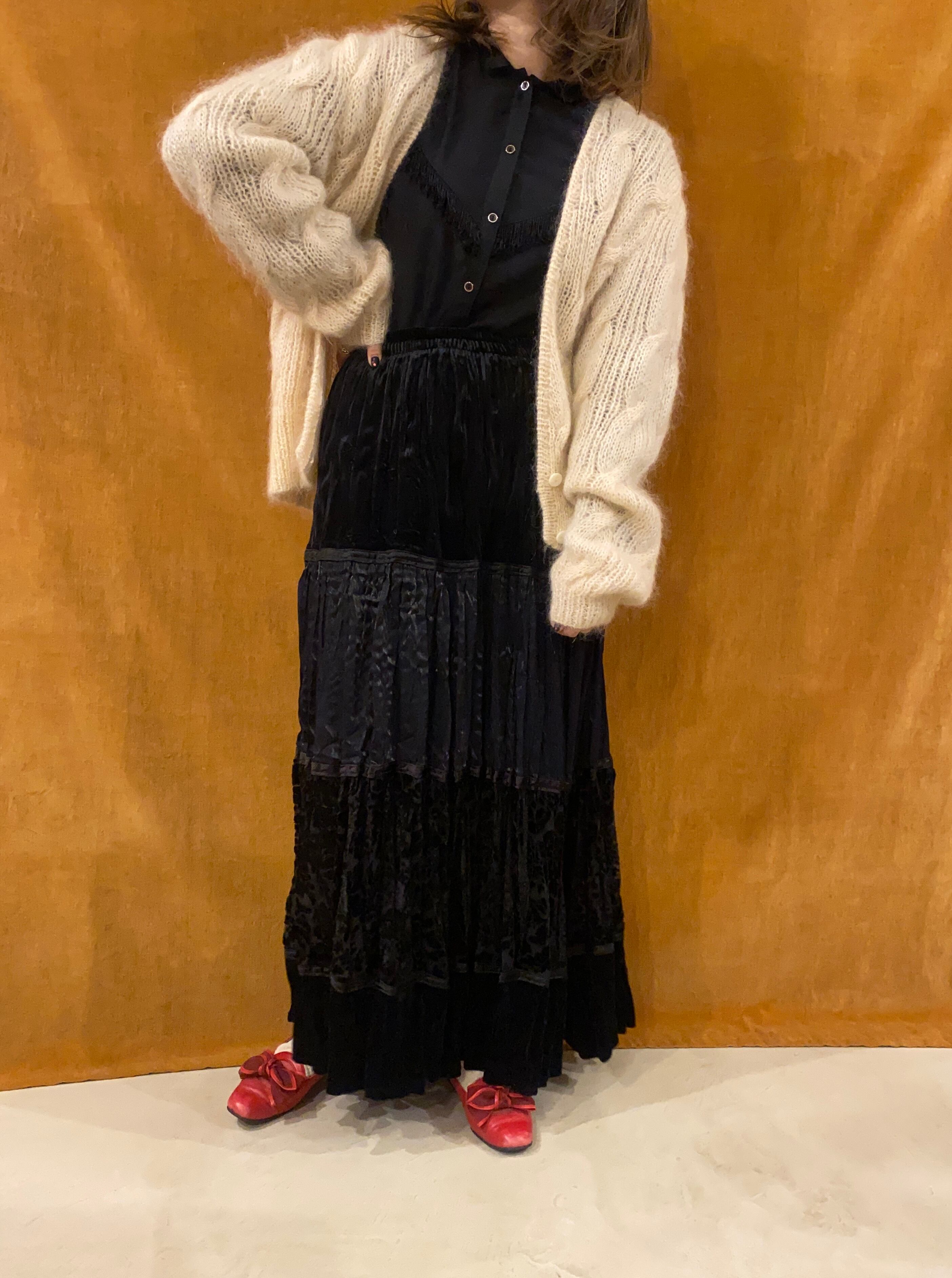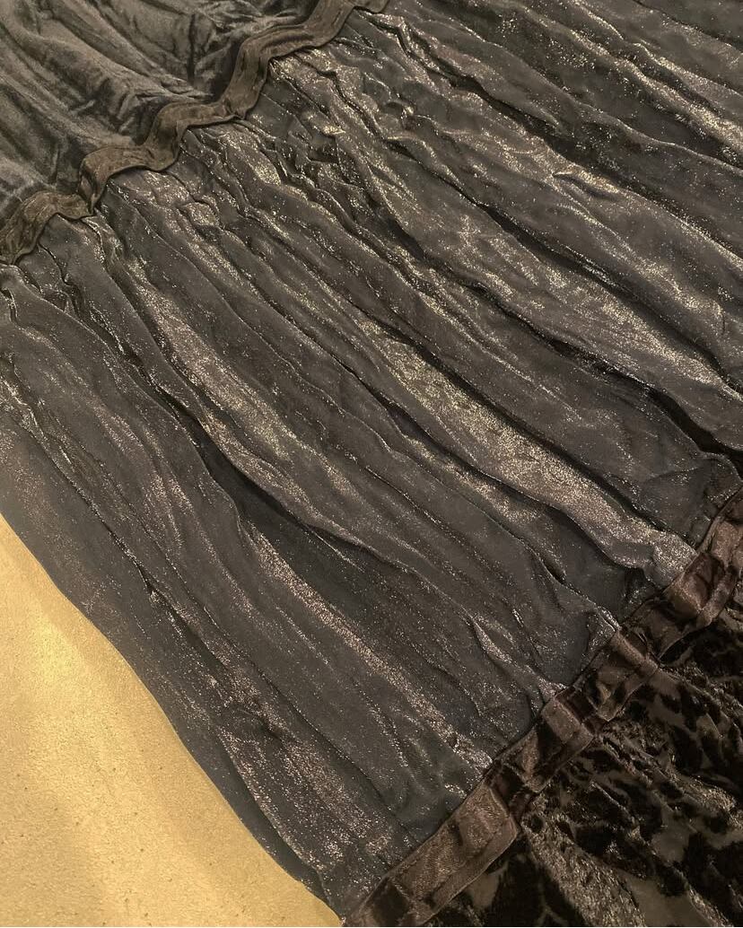 ベロアやサタンやレースなど切り返しになったプリーツスカート